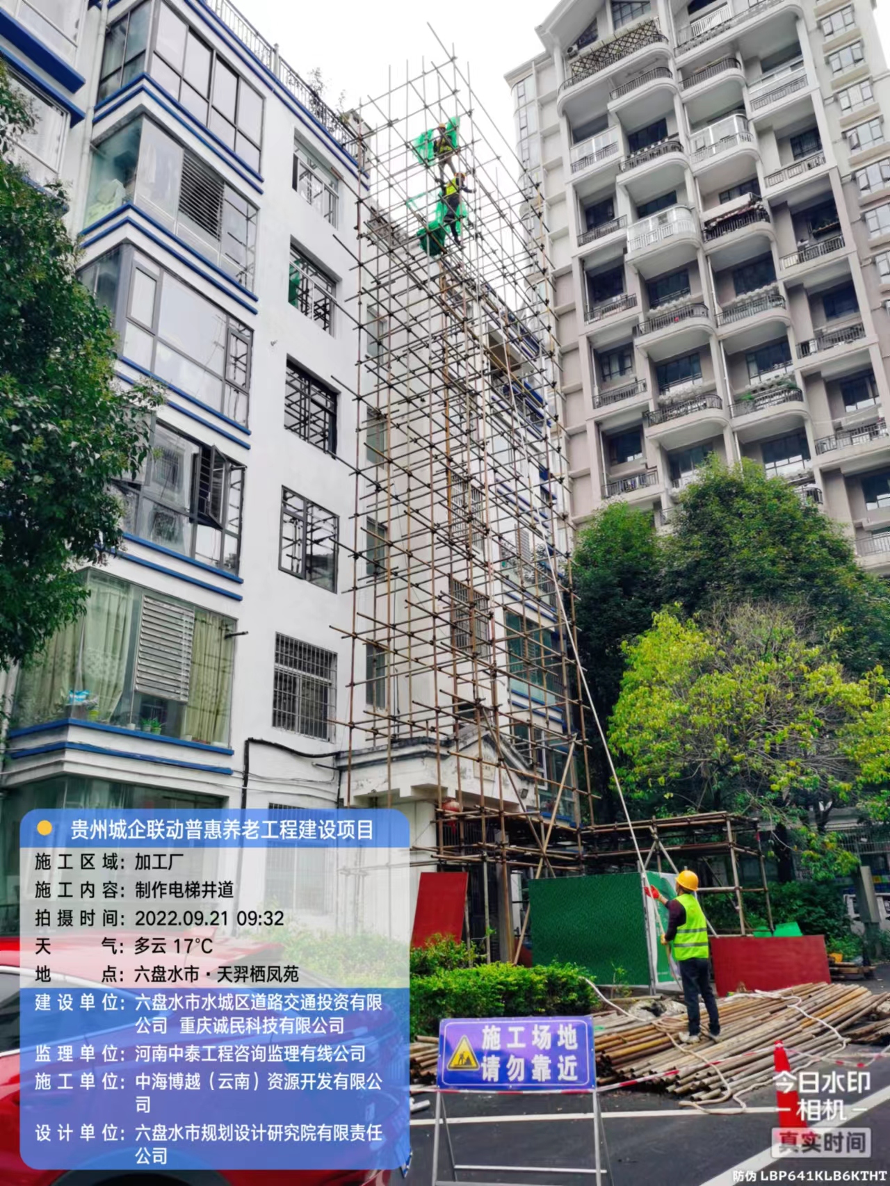 走進六盤水市鳳雅苑舊小區加裝電梯施工現場,工人正爭分奪秒奮戰在崗位上,做基礎,基坑脫模中 ,爭取早日讓業主們加裝上電梯。